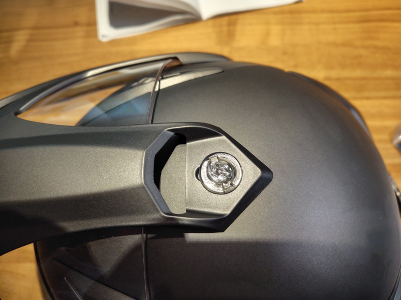 3か所の樹脂ボルトを、コインで回せるとのことでしたが硬すぎて回らなかったので、マイナスドライバーで緩め、バイザーを下げて固定しました。