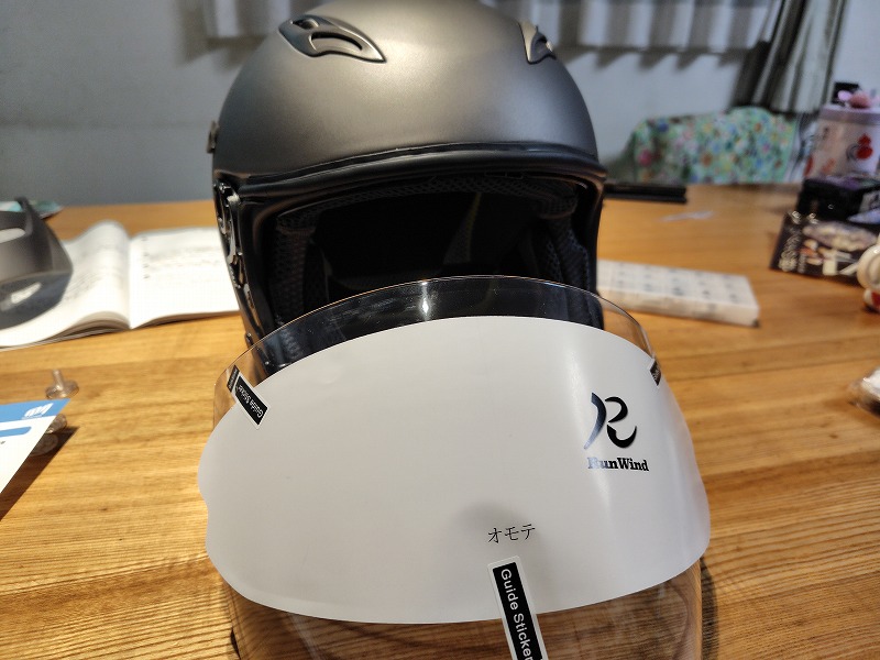 ジェットヘルメットで視界を広く取れるようにワイドタイプにしてみました。