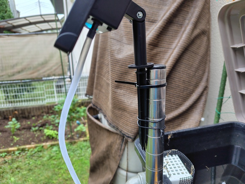 ということで、設置はメタルラックの棒に固定しました。